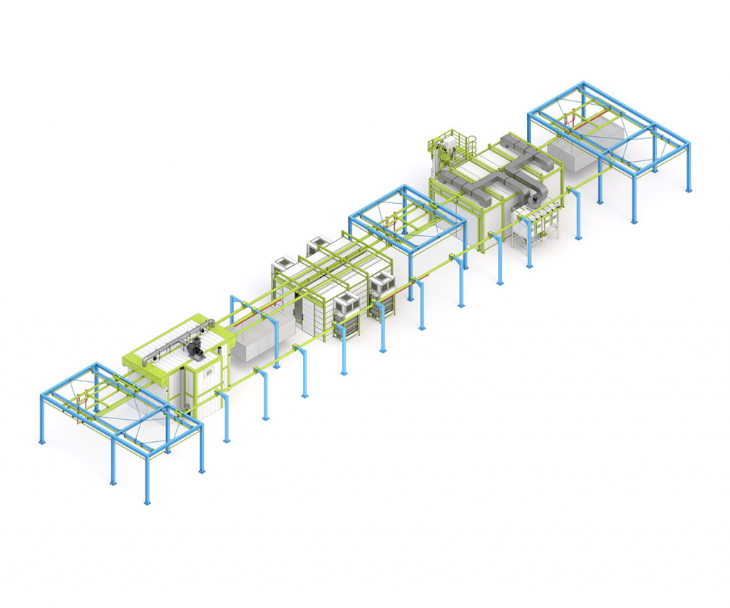 Комплекс оборудования SPK-56.10.4 для подгтовки к окраске, окраски и сушки изделий с подвесным конвейером